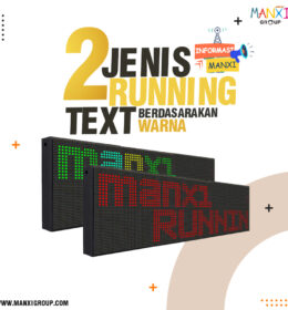 TULISAN BERJALAN / RUNNING TEXT | MANXIGROUP.COM Apa sih running text itu ? mungkin anda sudah pernah menemui di jalan-jalan sebuah perangkat elektronik berbentuk layar yang menampilkan tulisan berjalan. Seperti di masjid-masjid, atau di toko-toko yang mengiklankan atau memberi informasi... selengkapnya